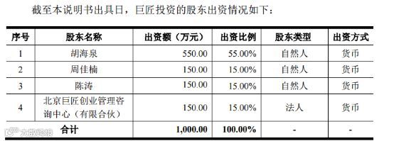 此次陈羽凡事件风波最受影响的要数正在新三板排队的巨匠文化,该公司由胡海泉和陈涛投资,胡海泉为巨匠文化实际控制人和法人代表,胡海泉还担任董事长和经理,陈涛任监事会主席,胡海泉和陈涛分别持股53.73%和11.54%。