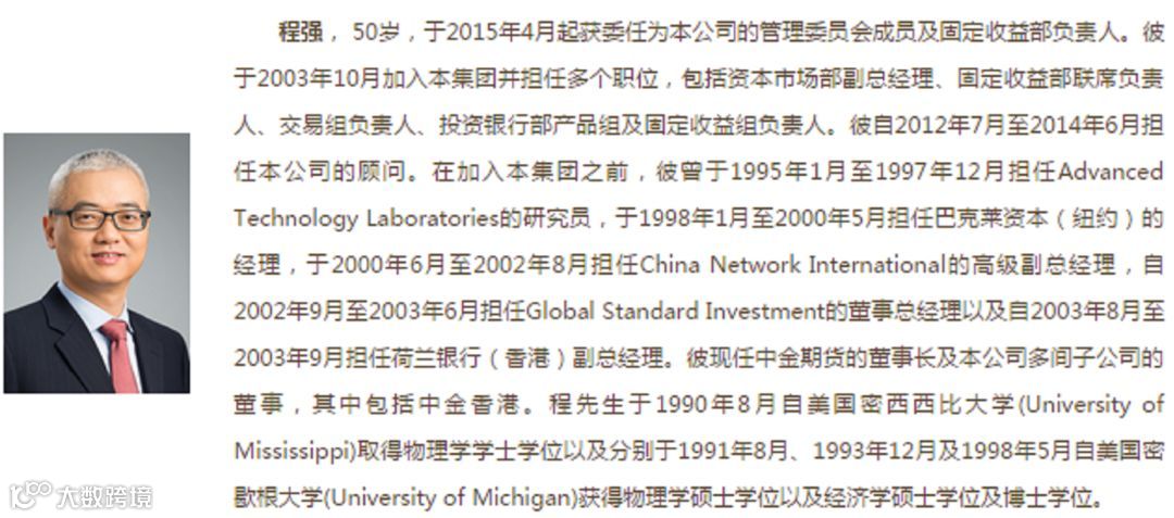 毕明建从2015年3月起担任中金公司首席执行官及管理委员会主席,当年5月起任公司董事。以3年任期来算,毕明建的董事任期已于今年5月到期,目前已处于逾期状态。