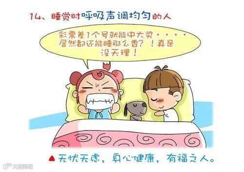 14.睡觉时呼吸声调均匀的人:无忧无虑,身心健康,有福之人。
