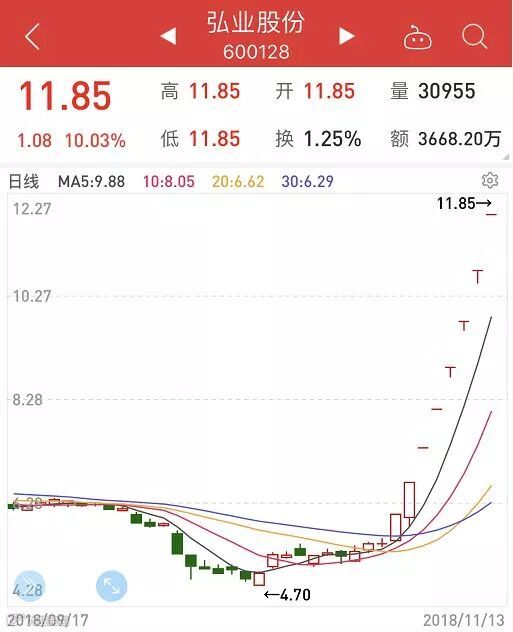 7个涨停还未停牌的弘业股份,昨日毫无悬念再度涨停。