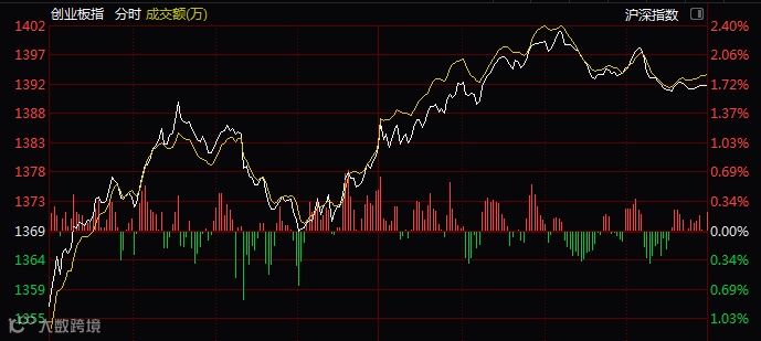 13日,创业板成为全市场的焦点,在A股大幅低开的情况下,创业板率先发起进攻,开盘不足10分钟,创业板指便已飘红。午后,创业板指再度上扬,并带动整个市场全面上行,截至收盘,创业板指大涨1.7%。
