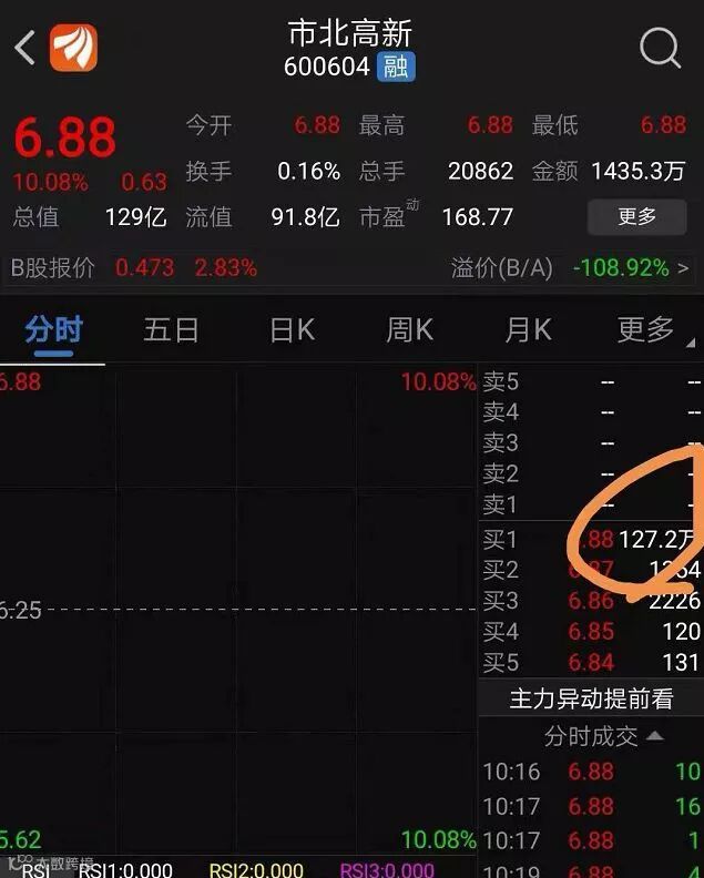 再来看市北高新,昨日拿下第七个涨停板,更为关键的是,市北高新买盘达127.2万手,意味着市场热钱强势回归,市北高新有望成为下一只妖股。