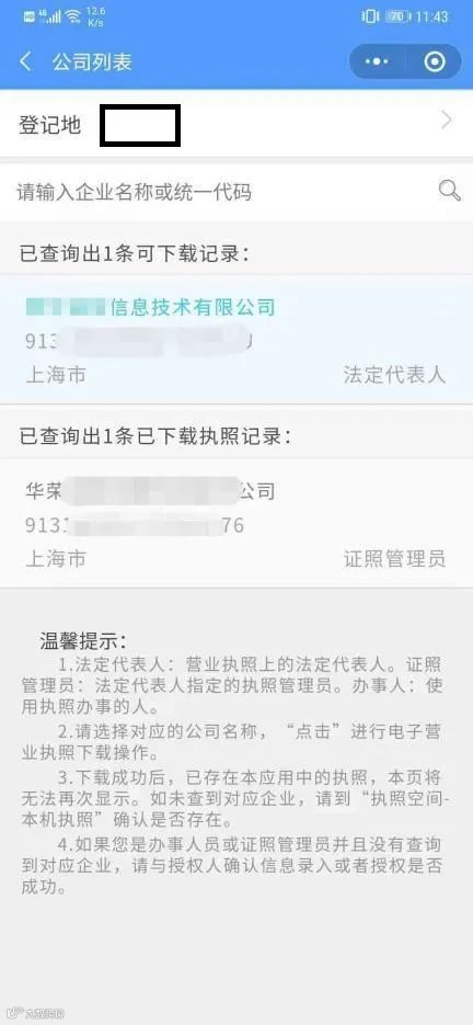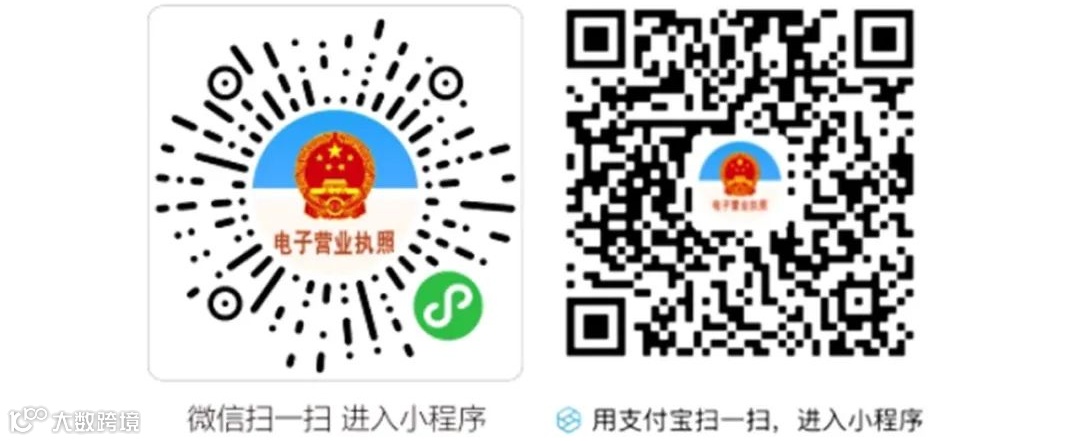 支付宝或微信搜索:电子营业执照,或扫描下方二维码进入小程序。