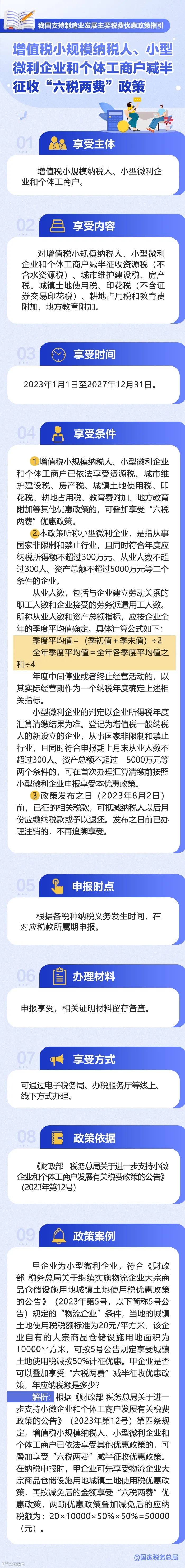 增值税小规模纳税人、小型微利企业和个体工商户减半征收“六税两费”政策↓