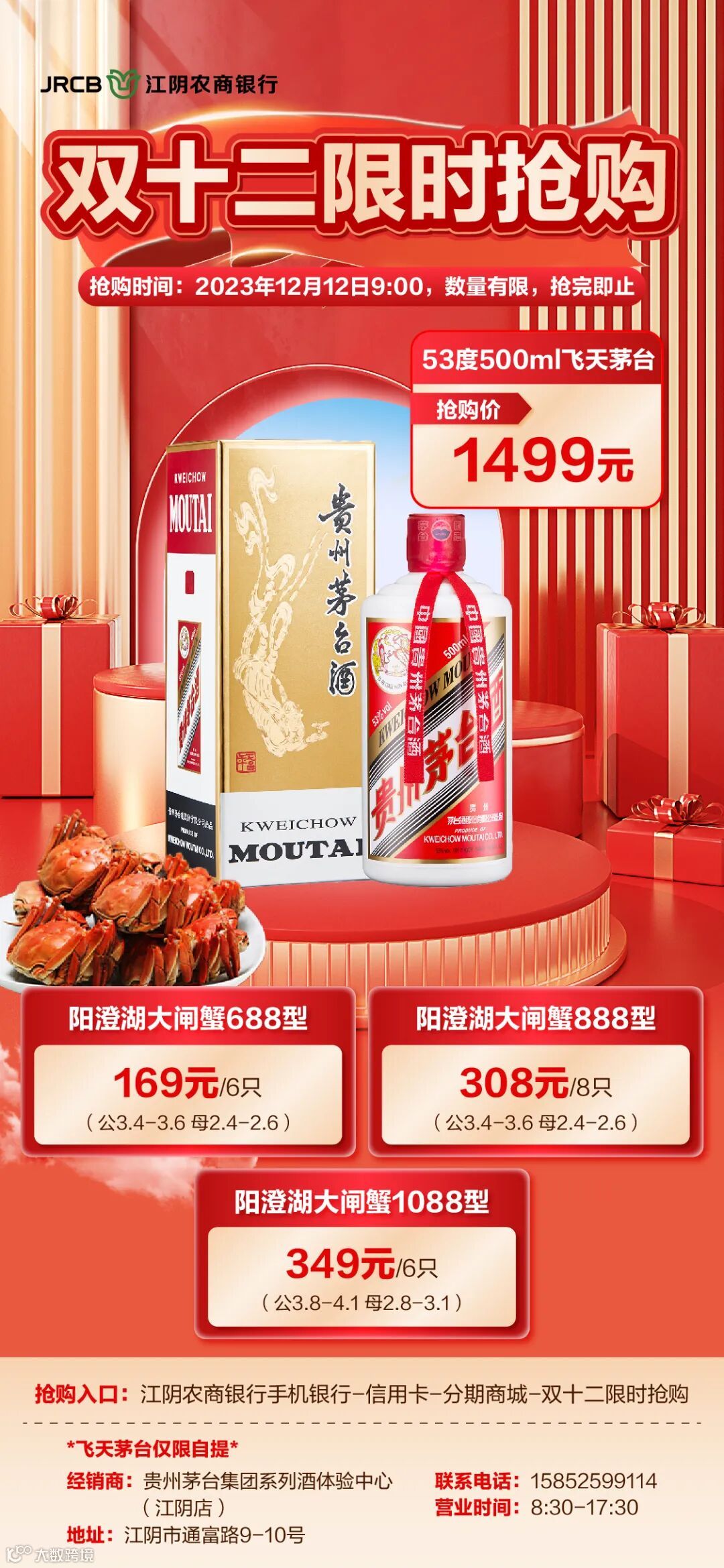 限时抢购 | 飞天茅台1499元、阳澄湖大闸蟹卡169元起,快来抢购吧!