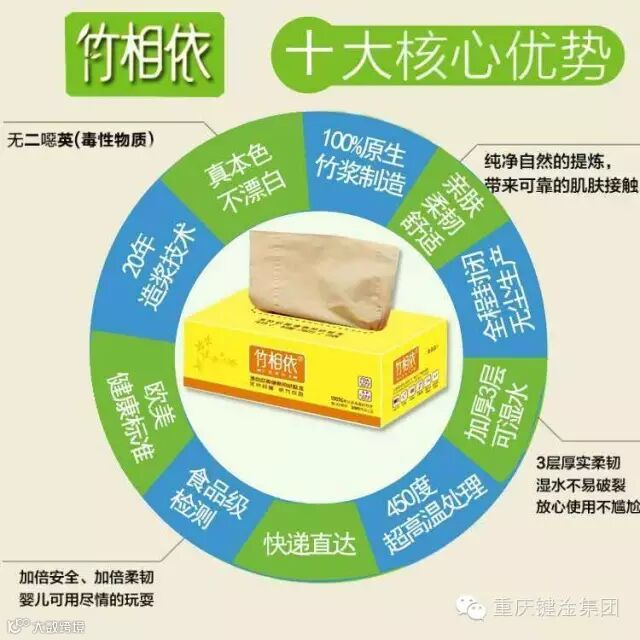 亲,这是我投资的“重庆竹相依实业有限公司”委托腾讯开发的空中商城的二维码,本公司所生产的“竹相依”牌竹纤维本色纸巾,不含任何化学成分、二噁英、漂白剂、荧光剂,含天然“竹琨”抑菌物质,通过了美国FDA和欧盟AP食品检测,特别适用婴幼儿、女性以及过敏体质人群。我的家人已经用过了,非常不错。该产品实行线上销售,你可以关注二维码进行了解、购买,如果暂时不需要购买,也请转发此文,帮助宣传推广,非常感谢!!!