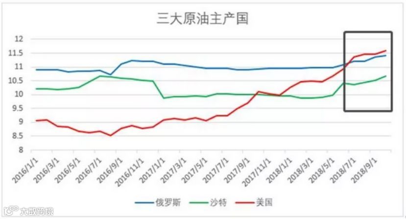 最令市场担心的还是美国。从下图就能看出,红线为美国,近年来产量增速最为迅猛。尤其是,今年8月份,美国原油产量成功超越俄罗斯成为全球最大的原油生产国。