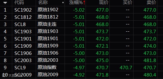昨日夜盘,中国原油期货SC1812、1901、1902等合约则全线跌停。今日早盘开盘,原油几大合约依旧封死跌停板,燃油期货也大跌超5%,其中1906合约跌停。