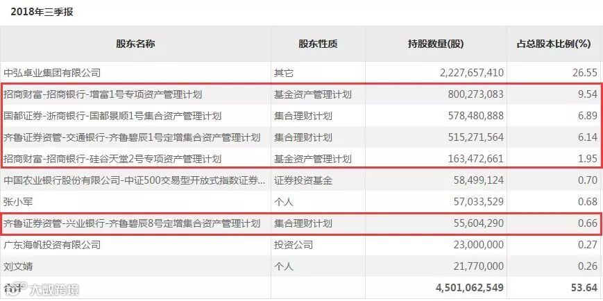 2016年,国都证券、招商财富资管和中泰资管3家机构参与中弘股份定向增发,至今3家机构还未退出,期间仅减持少部分股份,分别是招商财富-招商银行-增富1号专项资产管理计划、国都证券-浙商银行-国都景顺1号集合资产管理计划和齐鲁证券资管-兴业银行-齐鲁碧辰8号定增集合资产管理计划,暂居第2大股东、第3大股东和第8大股东。