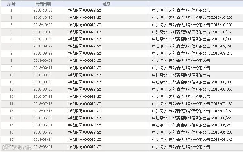 其实,中弘股份陷入困境已经不是一天两天了。关心中弘股份的除了投资者,还有为数众多的金融机构债权人。自今年6月份以来,中弘股份就开始陆续发布《未能清偿到期债务的公告》,至今已发布20份。