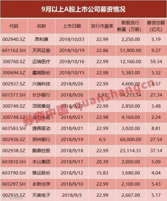 人保集团或是后一种情况。人保此前计划的发行数量45.99亿股股份,是2010年8月光大银行上市8年以来最多的,在A股发行历史上也可以排到第八。按照其2018年6月30日每股净资产3.43元保守计算,募资额将在百亿以上。