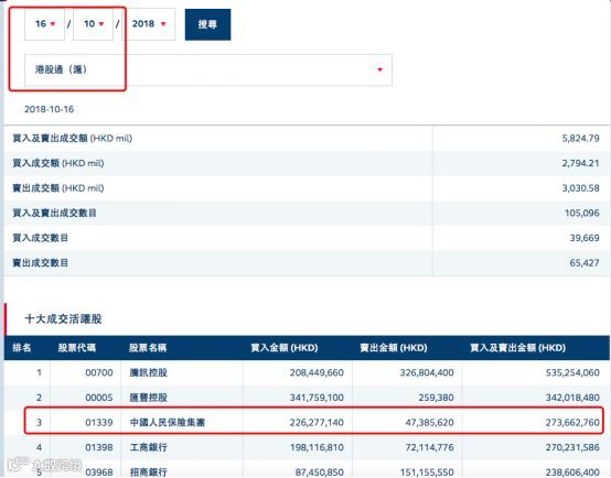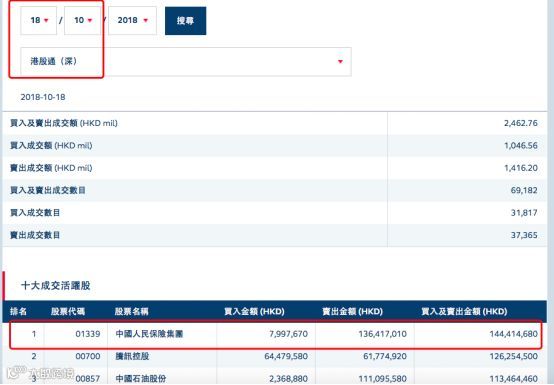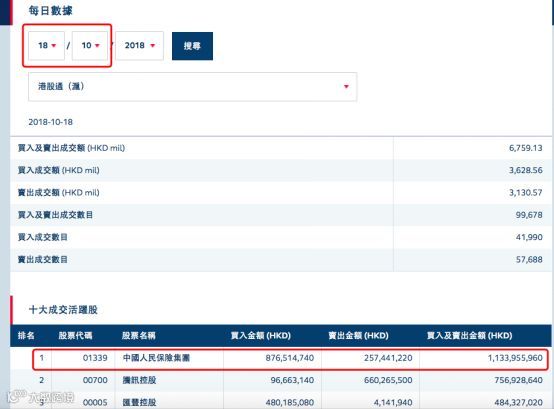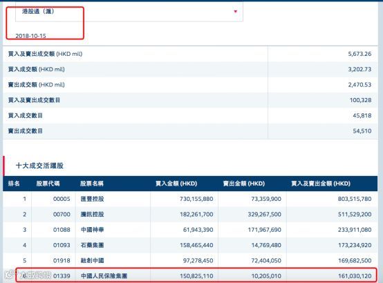 其中,10月18日位列港股通(沪)和港股通(深)两个联通市场的成交活跃股第一。