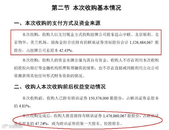 一是收购比例由22.52%提高到了42.43%,收购完成后,广州开发区金控将成为联讯证券的第一大股东、控股股东;