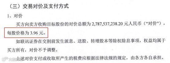 记者注意到,此前协议中,昆山中联、北京银利、北京物华开出的总价为27.88亿元,每股价格3.96元。
