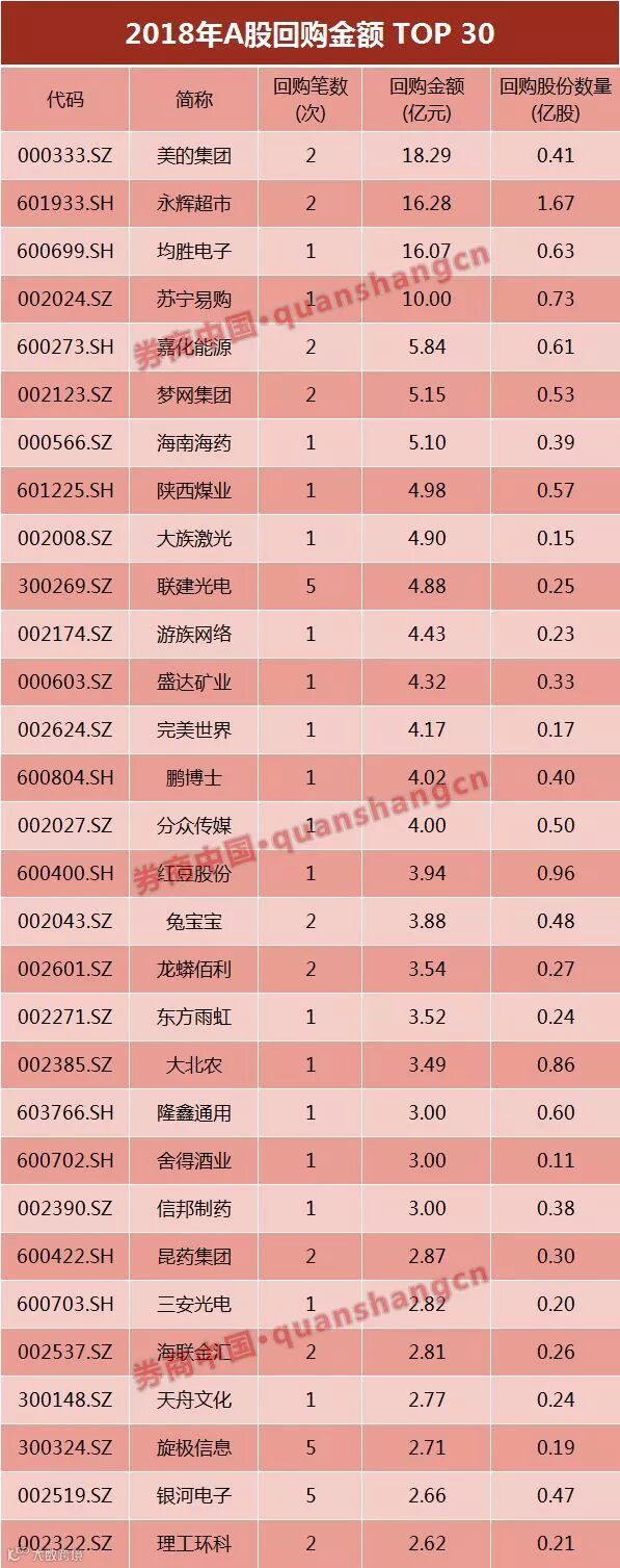 进入2018年以来,市场行情持续下行,A股整体估值不断下移,面对自家公司股价持续下跌,甚至偏离公司真实价值,多家上市公司控股股东或是高管纷纷提议回购股份维稳股价,并以真金白银实施,致2018年成为A股回购大年。
