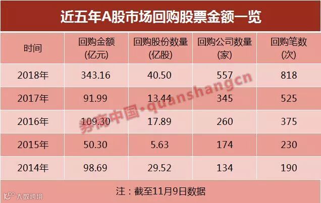 据券商中国记者统计,截至11月9日,A股市场共有557家公司实施了股票回购,累计回购40.5亿股,累计金额达343.16亿元,回购家数、回购股份数、回购金额三大数据均创下A股历史纪录。