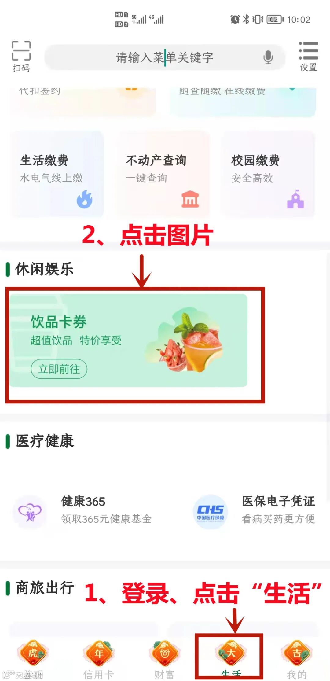 3、饮品卡券:客户在开奖后7个工作日,登录江阴农商银行手机银行生活栏目使用,具体步骤如下: