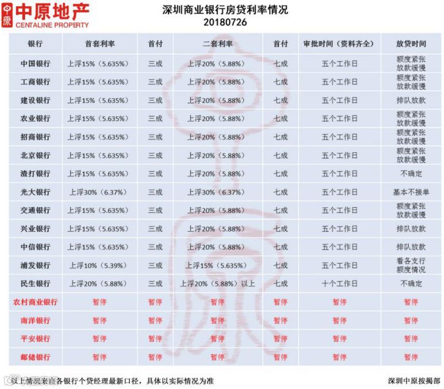 房地产热门城市深圳的房贷利率曾一路走高,市场上除了光大银行、民生银行等执行首套房贷利率上浮30%(6.37%)、20%(5.88%),工商银行、建设银行等均按首套首付3成、首套房贷利率上浮15%(5.635%);二套房首付7成、二套房贷利率上浮20%(5.88%)执行。