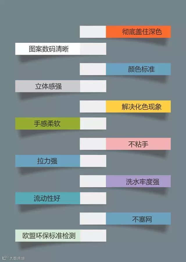 3.耐洗水(机洗60度*9小时不脱落)适合机印手印批量生产; strongwashing fastness (non-decoating after the machine washing at 60℃ *9h),can be mass printed by both machineand table.