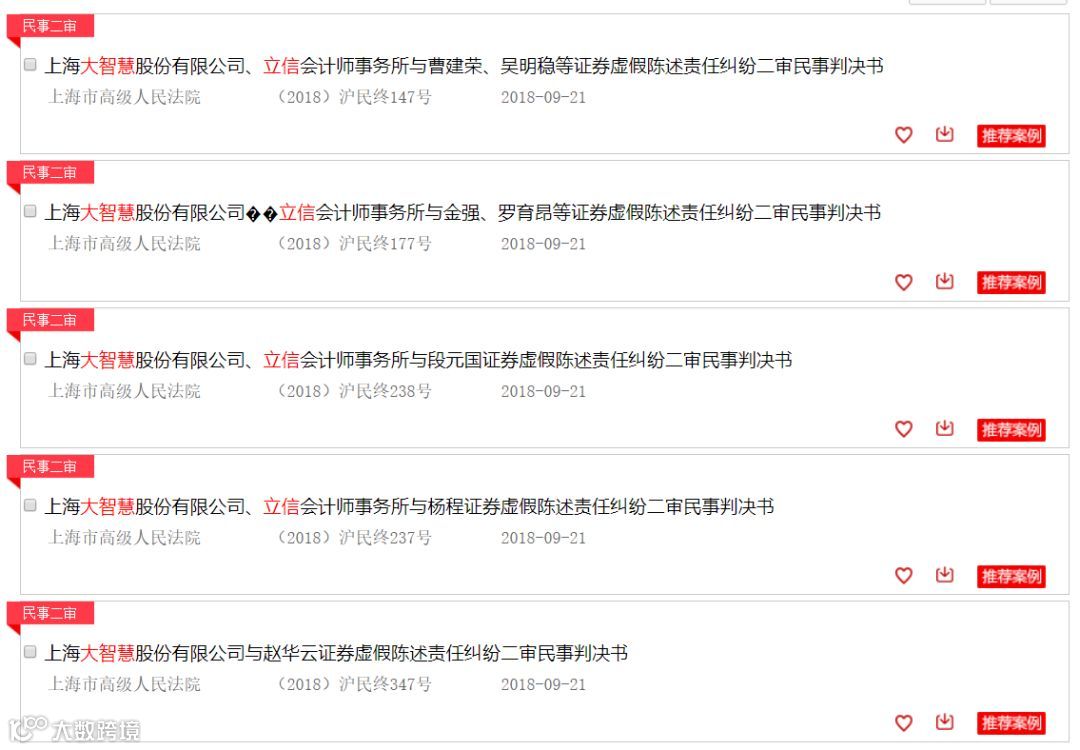 券商中国记者在中国裁判文书网看到多起投资者维权的官司,其中,绝大多数将立信所一起告上了法庭。