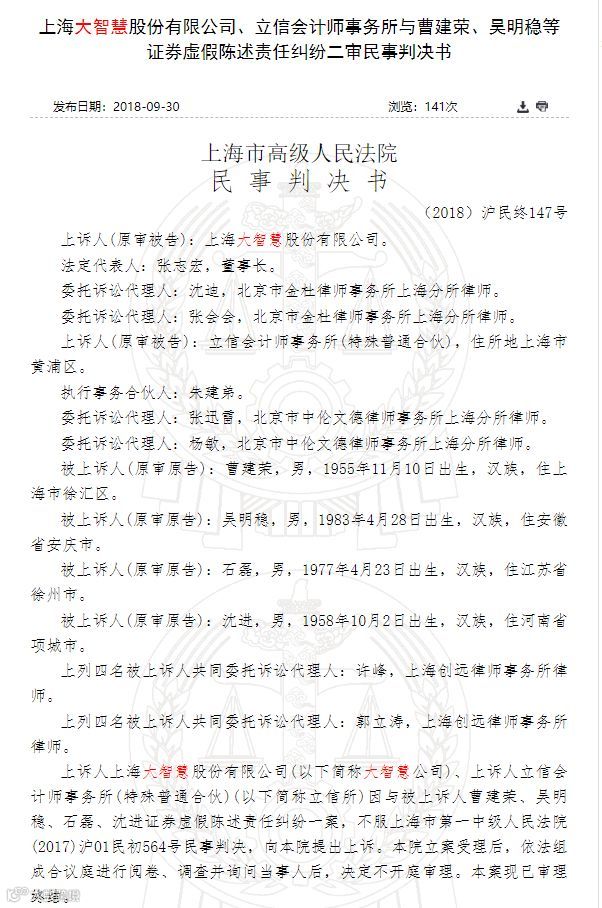最终,大智慧和立信所的上诉理由均不能成立,被驳回上诉,维持原判。