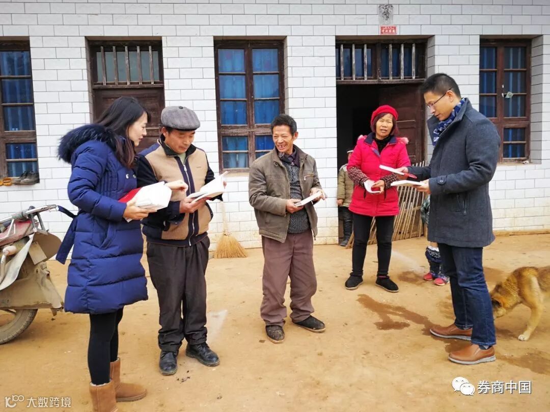 ▲东兴证券扶贫工作小组入村入户宣扬十九大精神