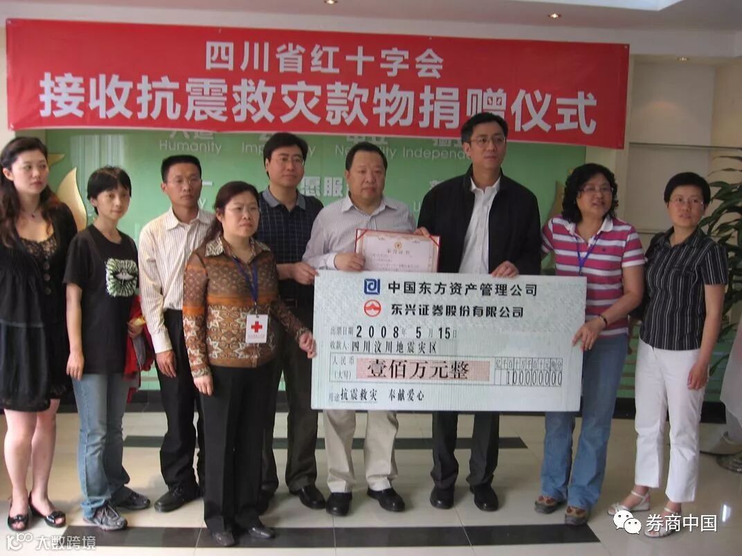 ▲2008年东兴证券简化开业仪式捐款100万元支援汶川灾区