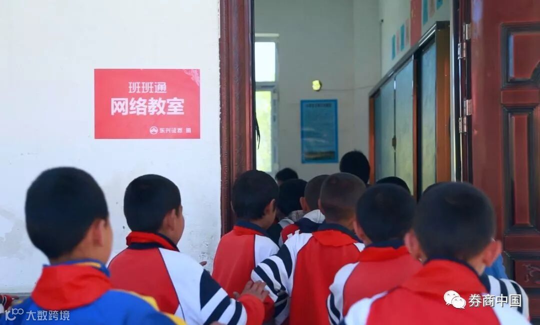 2017年,东兴证券相关领导亲自带队,对当地教育水平进行了两次实地调研,相继走访了尼勒克县西部和中部边缘的十几所学校。2017年11月,东兴证券投入110万元为新疆尼勒克18个小学教学点65个班级配备“班班通”网络教学设备,改善偏远贫困地区教师力量缺失的问题,孩子们通过东兴证券捐资援建的“班班通”网络教学设备看到了外面的世界。