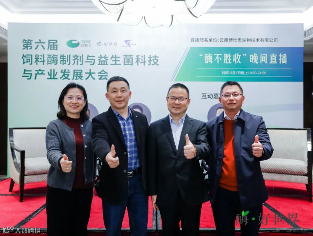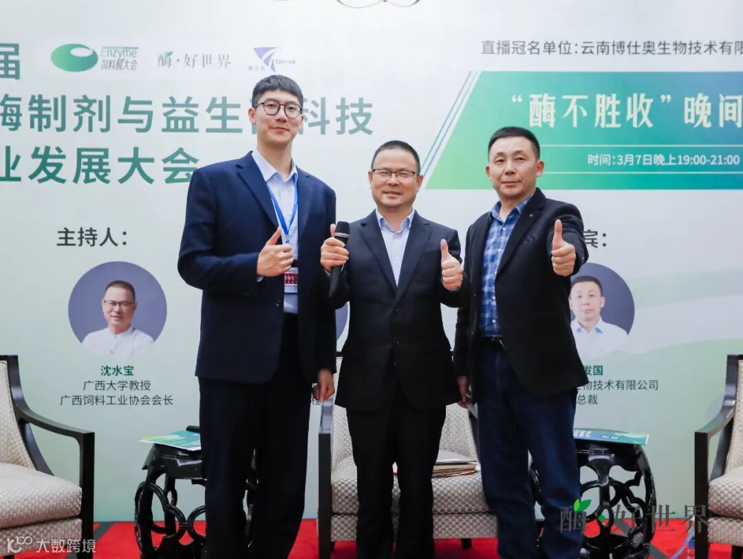 作为大会战略合作单位,博仕奥生物深度参与了多维度研讨。在由云南博仕奥生物技术有限公司冠名的“酶不胜收”主题直播会上,博仕奥总裁蔡发国先生与广西大学沈水宝教授等业界大咖同台论道,聚焦原料预消化、酶菌协同增效、低碳养殖方案等热点议题,与线上线下的观众进行了深入互动。