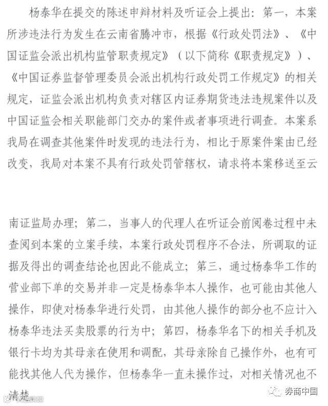值得注意的是,当时杨泰华提交了陈述申辩材料,在听证会上提出了四点抗辩理由。
