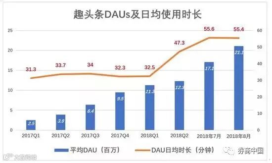 趣头条是家啥公司?从趣头条内容来看,多以八卦、娱乐、养生、搞笑类为主,贴合了低线城市用户的需求,带来了强大的粘性。招股书中提到说2018年8月人均每天使用时长55分钟,远远超过国内大部分应用,只有微信和头条系可以媲美。