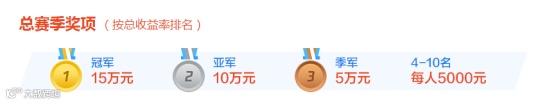 大赛进行中,将同步开启高手点评,邀请比赛成绩脱颖而出的选手分享自己的操盘思路,并可获得现金奖励,打造个人IP。此外赛事特别增设抽奖环节,就算是投资新手,也有机会领取10万奖金!