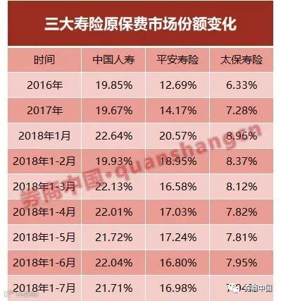 “一代霸主”国寿的寿险霸主之位依然面临挑战。中国人寿原保费市场份额由2013年的30.42%降至2017年底的19.67%,2014年后一直未能重回三分天下有其一的市场份额。近年来,平安寿险的市场份额和盈利水平不断逼近寿险老大中国人寿。国寿和排名第二的平安人寿的原保费收入差距在今年2月曾缩小至76.19亿元。今年1-2月,平安寿险规模保费更一度超过中国人寿。