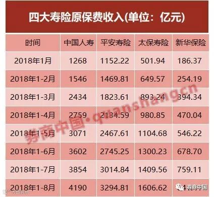 近日,四大上市寿险的8月保费已披露完毕,前8月总保费达近万亿。从市场份额来看,2013年~2017年,人身险前十大位次多次更迭,安邦人寿一度逼近国寿市场份额,但随着安邦被接管,安邦人寿原保费收入已从第2名跌落到第23名;目前寿险保费前三座次回归至国寿、平安寿险、太保寿险的“老三家”稳定态势。