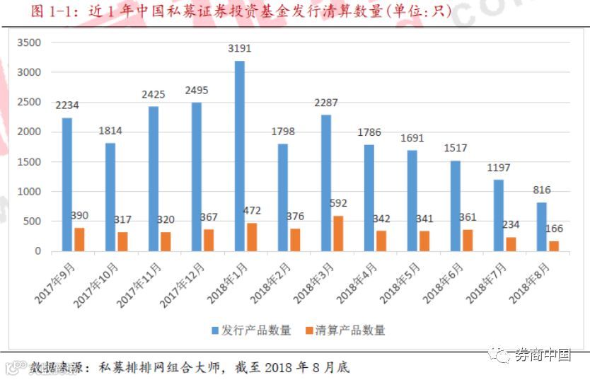 今年前8 个月,私募基金共发行14283 只产品,月度的产品发行量呈现出明显的下降趋势。尤其是8月份,私募一共仅发行了816只产品,这也是今年以来发行数量首次跌破千只以下,创下一年来新低。