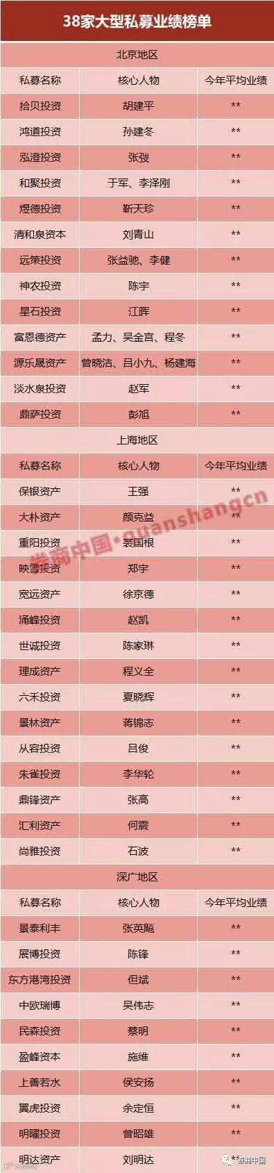 券商中国记者再翻看北京、上海、再到深广地区所有的大型私募数据,发现自8月份开始,已经全线折戟。北上广深地区,满足管理规模超过50亿或管理规模30亿以上且机构成立满5年的股票私募并展示产品业绩的共有38家,今年以来这38家私募的业绩已经全部由正转负。
