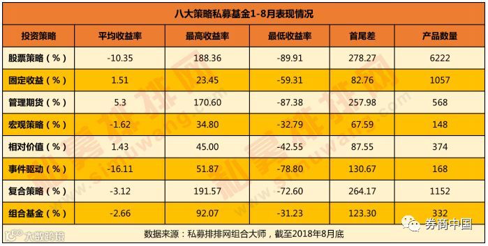 私募排排网数据显示,成立时间满8个月、且有业绩记录的产品总共有10021只,今年以来的平均亏损3.21%。其中股票策略的产品数量为6222只,平均亏损10.35%,在私募八大策略中排名垫底。