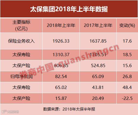 2018年上半年,太保集团营业收入首破2000亿元,同比增长15.3%,截至2018年6月30日,太保集团总资产达到1.29万亿元,同比增长9.8%。