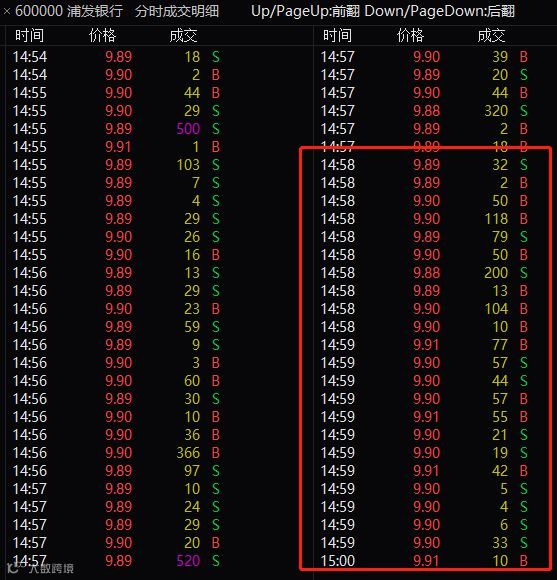 上交所股票——浦发银行,14:57之后,与此前成交方式无异,继续采用连续竞价。