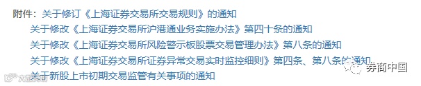 同时上交所配套修订了《上海证券交易所沪港通业务实施办法》《上海证券交易所风险警示板股票交易管理办法》《上海证券交易所证券异常交易实时监控细则》及《关于新股上市初期交易监管有关事项的通知》。