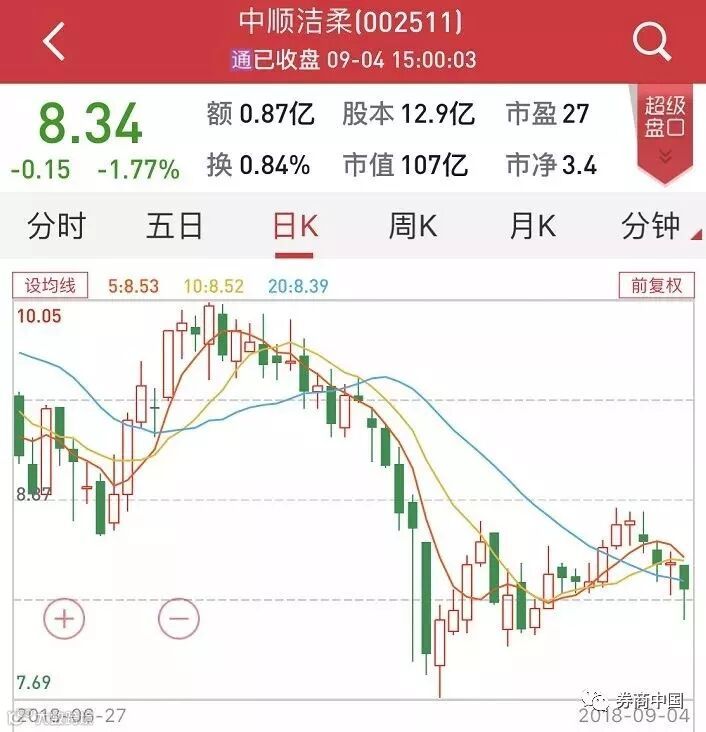 从今日中顺洁柔股价表现来看,投资者对于这次“回馈股东活动”及减持计划并不满意。盘中跌幅一度扩大至近4%,截至收盘,报收8.34元,跌1.77%。