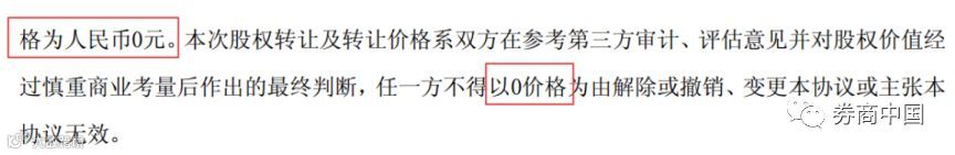 公告表示,鉴于审计及评估基准日天业集团净资产为负,双方同意本次股权转让价格为人民币0元,并且该转让价格为最终判断,任一方不得以0价格为由解除或撤销、变更本协议或主张本协议无效。
