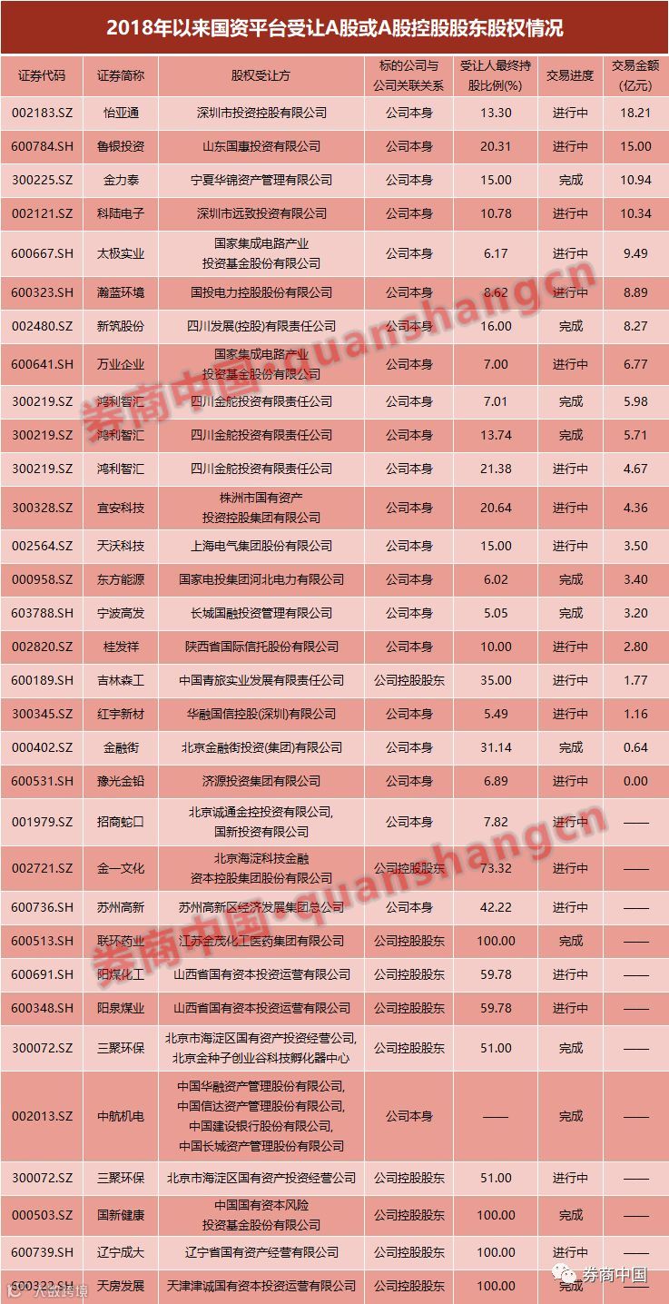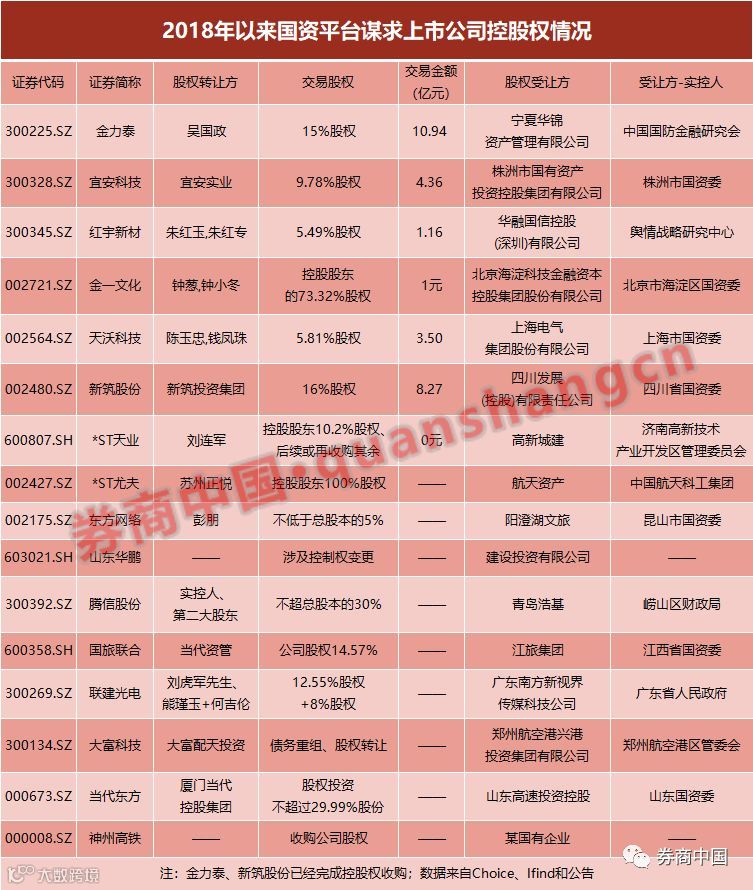 除了深圳国资委外,多个国资平台也在今年受让A股股权,只是大部分都不涉及控股权问题。