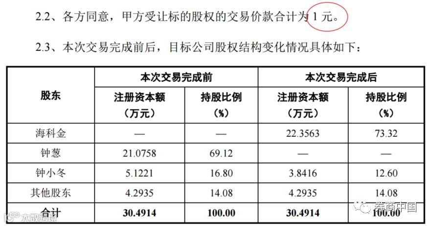 根据收购方案,海科金集团将收购碧空龙翔73.32%的股权,进而间接控制金一文化17.90%股权,受让股权的交易价款合计为1元。