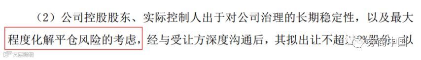同时,公司控股股东“出于对公司治理的长期稳定性,以及最大程度化解平仓风险的考虑”经与受让方深度沟通后,其拟出让不超过8%股份,以解决其个人资金问题。