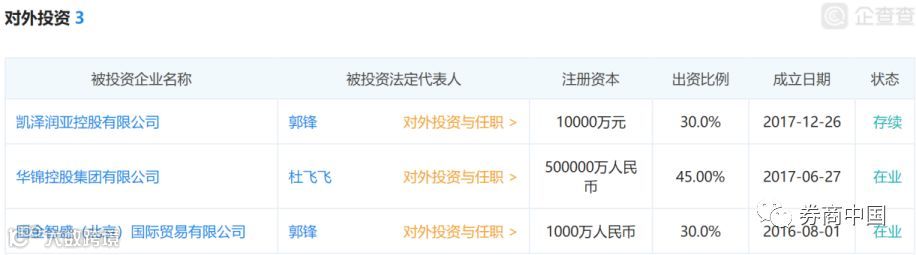 根据企查查数据,除了宁夏华锦外,这个智库组织还投资了凯泽润亚控股公司和国金智盛(北京)国际贸易公司,持股比例分别达30%和30%,这两家公司的注册资本分别为1亿和1000万元。
