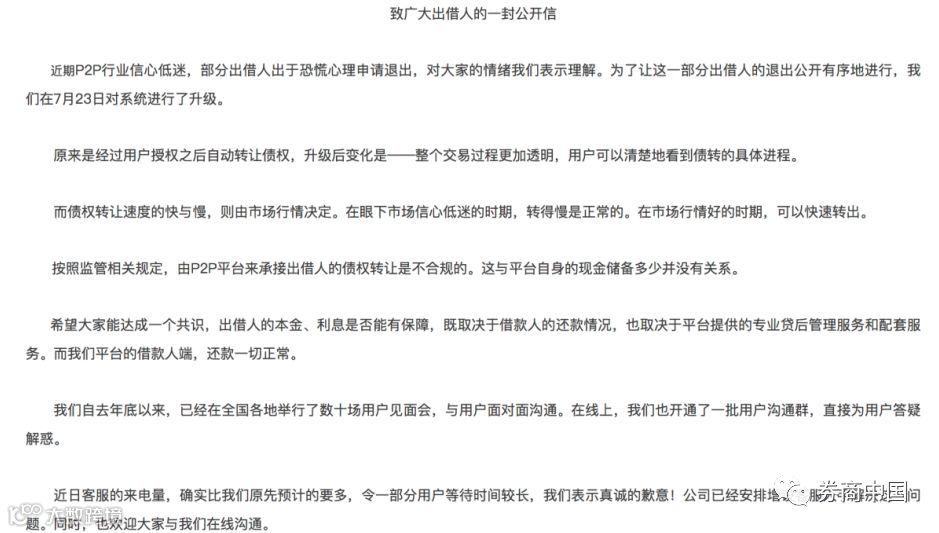 业内人士表示,虽然“定切散”和“取消自动债转功能”使平台运营和投资人体验都受到较大的影响,但是乐意确实有效地缓解平台流动性问题,并且产品调整也不会改变借款项目的,投资人需理性面对平台的产品调整。