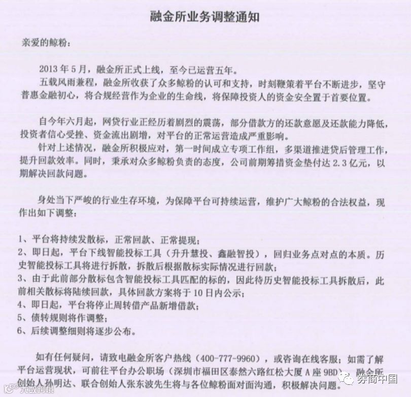 此外,融金所对平台的智能工具集合业务进行调整,据悉,调整后出借人将持有散标;调整业务将分批次进行,预计将于2018年8月1日开始调整1个月的鑫融智投,其余智能投标业务的调整将按月份由短到长,逐步完成。因此,该平台纯散标(指出借人手动投满的散标,即未被集合业务资金匹配的散标)正常回款;非纯散标(指被集合业务资金匹配过的散标)将在调整后进行回款。