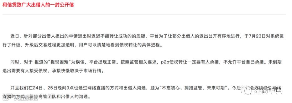 而 “取消自动债转功能”指理财计划原来是平台经过用户授权之后自动转让债权,但现在取消这个功能,投资人需自行债权转让,将债权放到债权转让专区,由其他投资人承接,退出速度完全由市场行情决定。例如和信贷在7月23日发布公告称对将转让中的债权集中展示于新设的“转赚”专区,由其他用户承接后即可完成退出。