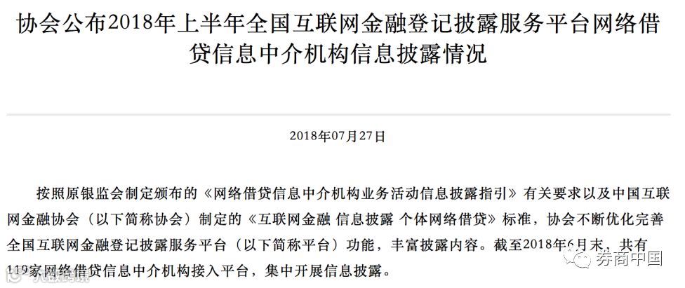 此外,中国互金协会汇总整理了各家机构披露信息报送情况,首次对外公开,截至2018年6月底,119家接入机构贷款余额约6828.03亿元,累计交易总额约40440.17亿元。